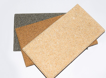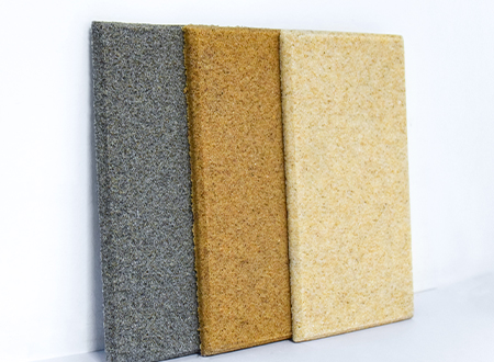 微粒材料是一種新型綠色裝飾材料,具備優(yōu)異的聲學性和物理性能。該材料是以天然砂?;蚪?jīng)環(huán)保處理的固廢顆粒為骨料,以環(huán)保膠凝劑,通過壓振工藝,生產(chǎn)的具有大量相互連通的微小空隙的多孔材料。